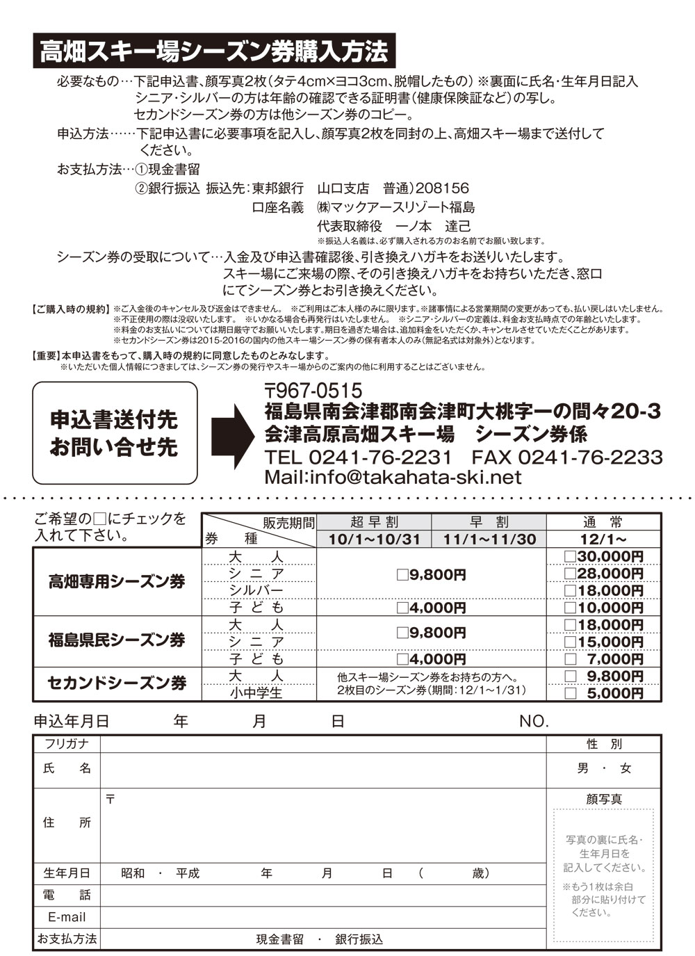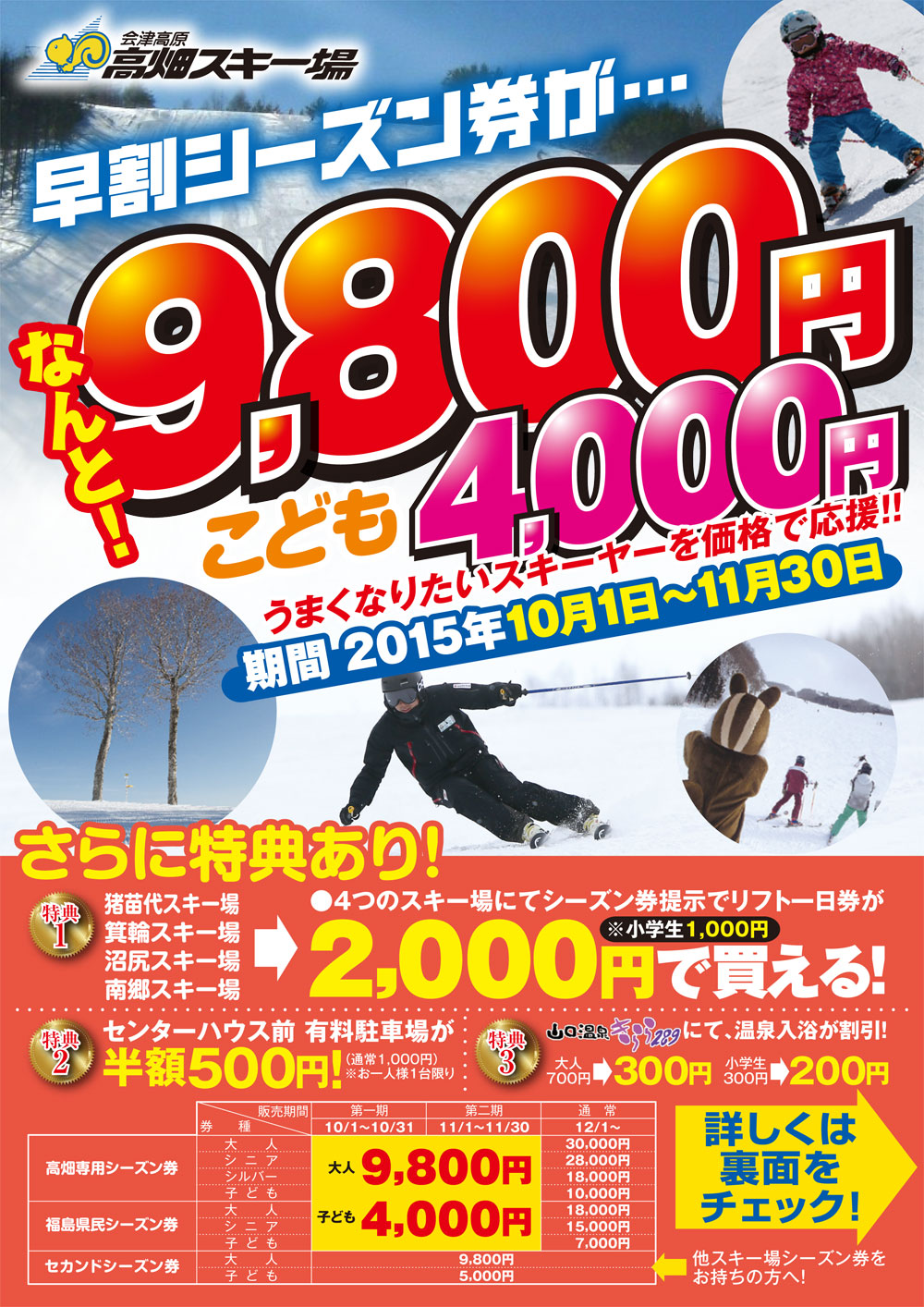 会津高原高畑スキー場 2015-2016シーズン券パンフレット会津高原高畑スキー場 2015-2016シーズン券申し込み