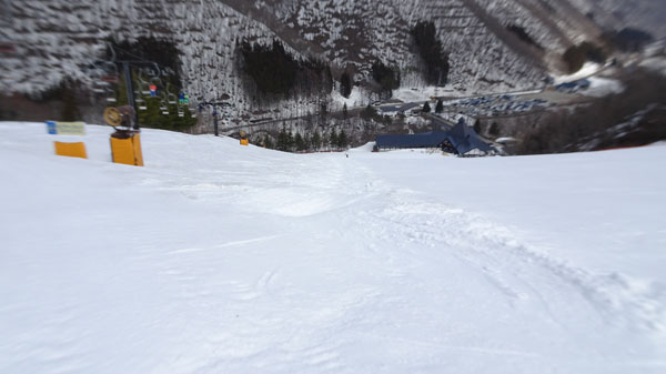 仕上げに猪谷ゲレンデリフト脇のコブまで滑って終了。