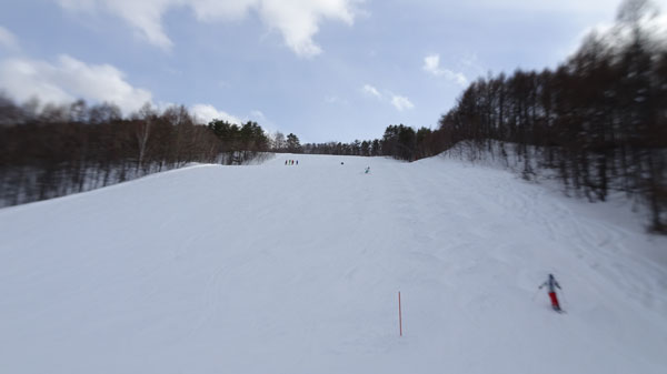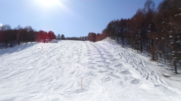 最初にラインを引いた感覚ではバーンは柔らかく感じたが、滑り込んでいっても思った程は掘れない。先週からの硬いベースは健在みたい。