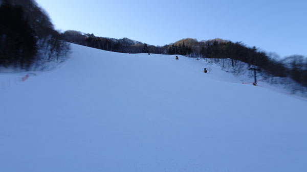 午後になっても晴れているわりには、バーンが緩まず締まったまま。まあエッジが効くが体への負担が大きい。