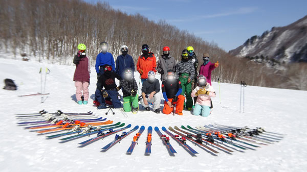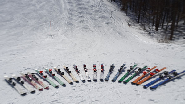 同じID-oneのスキーが揃うとなかなかの眺め。購入したシーズンが違うため各シーズンの色が揃いなかなかカラフル。
