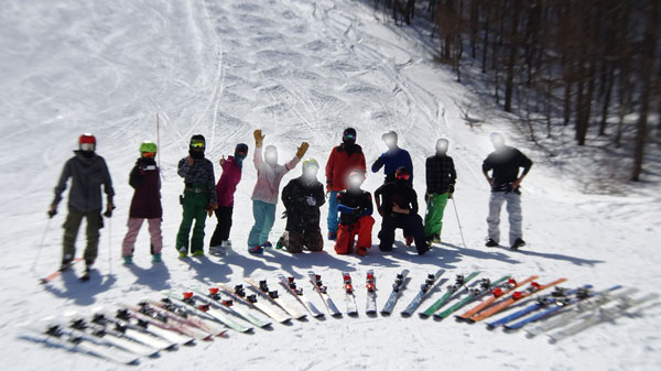 今日も沢山のコブ大好きな人達が揃い、みんなが同じID-one(メーカー)のスキーを履いているってことで、まとめて記念撮影。