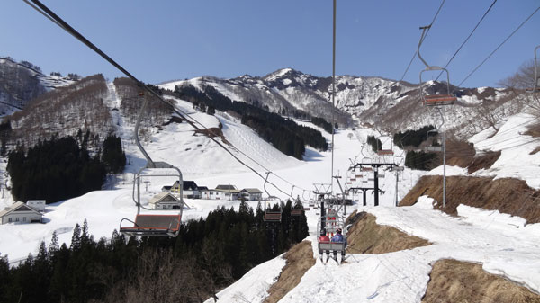 4/12神立高原スキー場 池の平高速4人乗りリフトからスノーボード試乗会の眺め