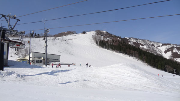 4/12神立高原スキー場 戸沢ペアリフトからメインゲレンデの眺め