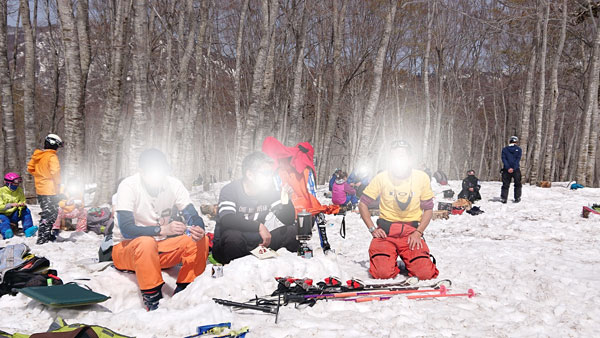 それでも4~5名のグループでコブのライン付けを始めだしたので、その跡をトレースしていく。